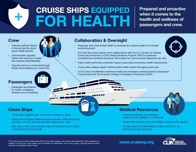 Yes, illness can happen anywhere people gather, but you're just as likely (if not more likely) to pick up germs at a crowded airport, airplane, or theme park than you are on a modern cruise ship. Plus, every ship has a medical center on board with trained doctors and nurses, something most resorts can't offer.